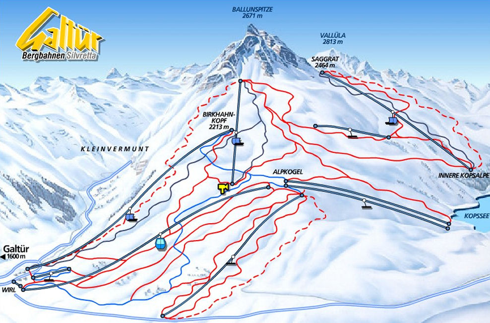 Hieronder staat een plattegrond van het skigebied van Galtur. Klik op de plattegrond van skigebied Galtur om de plattegrond te vergroten.Op deze mnanier kan je je leuk voorbereiden op je vakantie naar Galtur. Je kunt alvast bekijken welke pistes in Galtur je wilt gaan bedwingen.